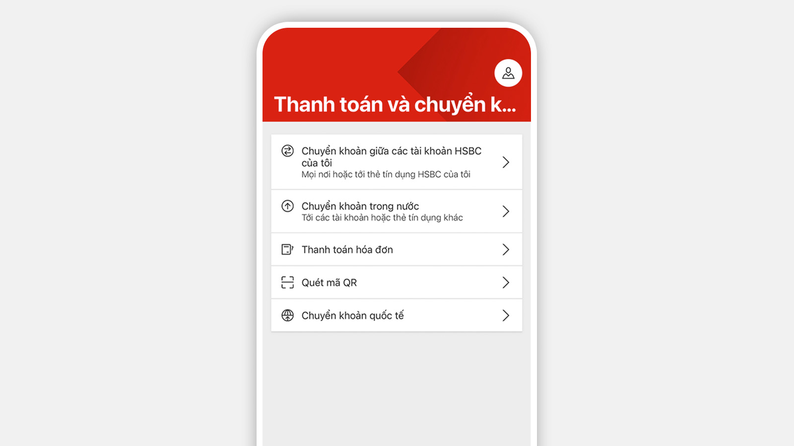 Kiểm soát nguồn tài chính của Quý khách một cách dễ dàng bằng Ứng dụng HSBC Việt Nam. Quý khách có thể kiểm tra số dư tài khoản và thực hiện giao dịch chuyển khoản 24/7 mọi lúc, mọi nơi thông qua Ứng dụng.